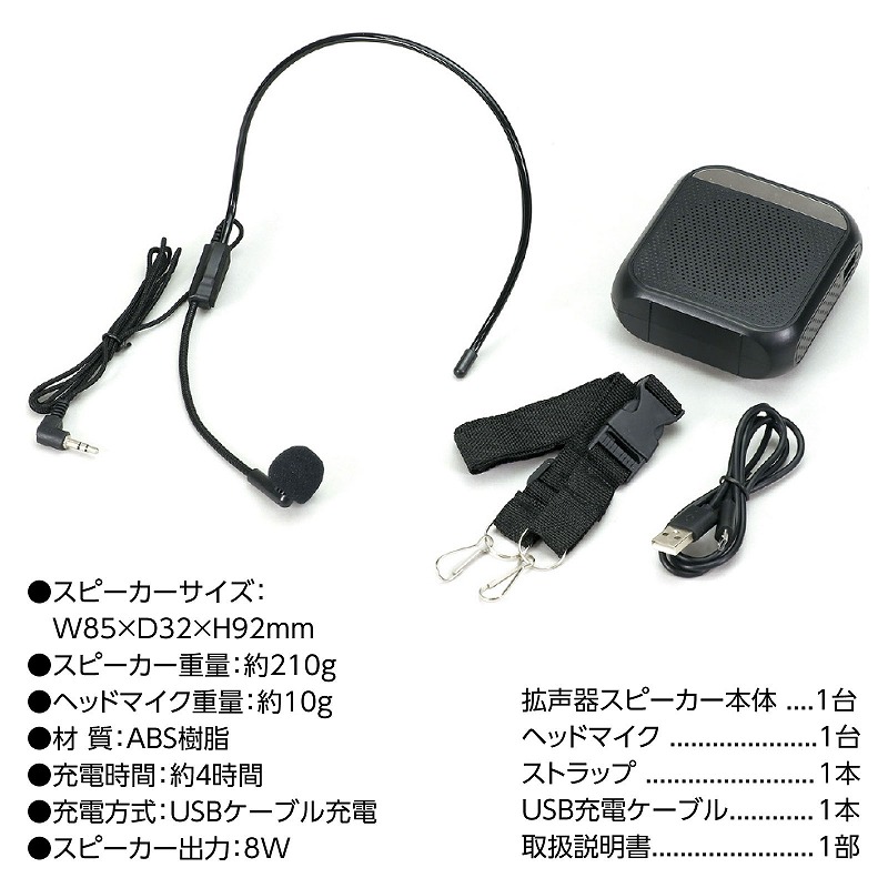 ●充電方式:USBケーブル(Micro USB Type-B)充電 ●スピーカー出力:8W ●充電時間:約4時間