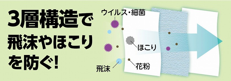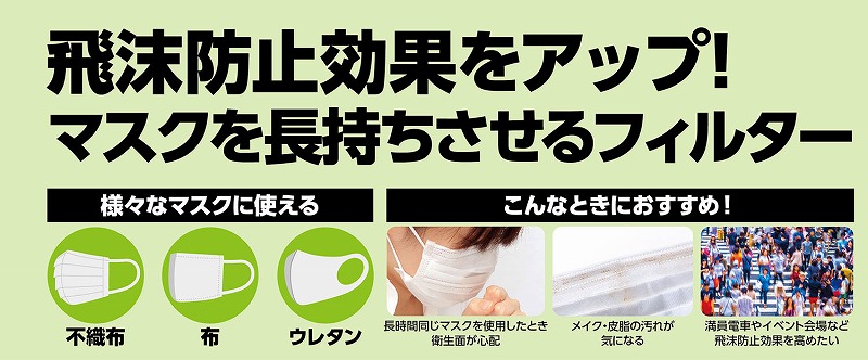 ポケット付のマスクなどに入れて使用すれば飛沫防止効果がアップ!