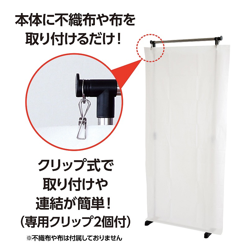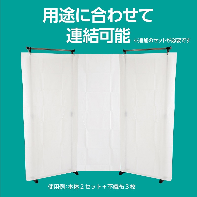 ・超軽量・間仕切りパーテーション2台を専用不織布でつないでコーナーの連結やスペース拡大ができます!