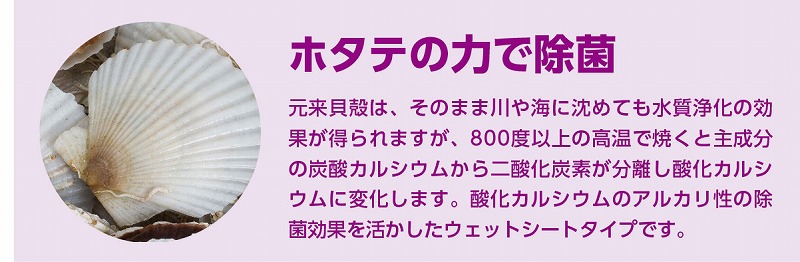 ●除菌成分/ホタテ焼成貝殻粉末、ポリヘキサメチレンビグアニジン塩酸塩、エタノール ●その他成分/水、パラベン