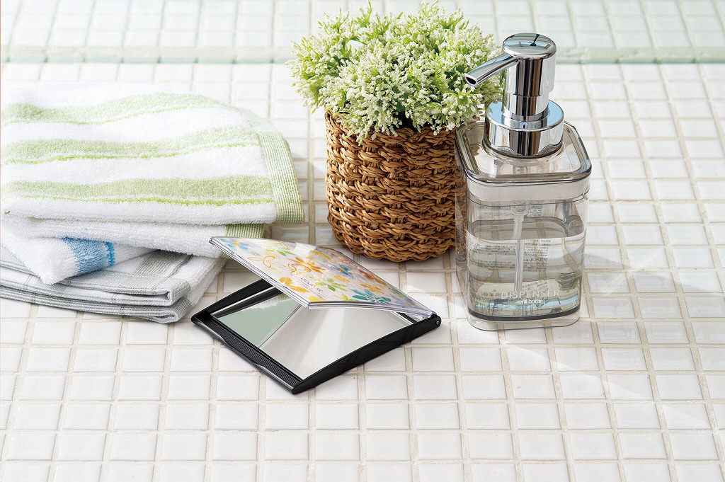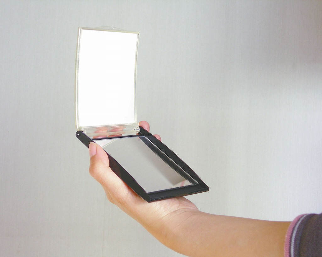 おしゃれなフォルムの便利なミラー。かばんにスッと入り、スリムなのに大きな面で、とても便利なミラーです。手鏡として、置き鏡として、日常のあらゆるシーンでお使いください。