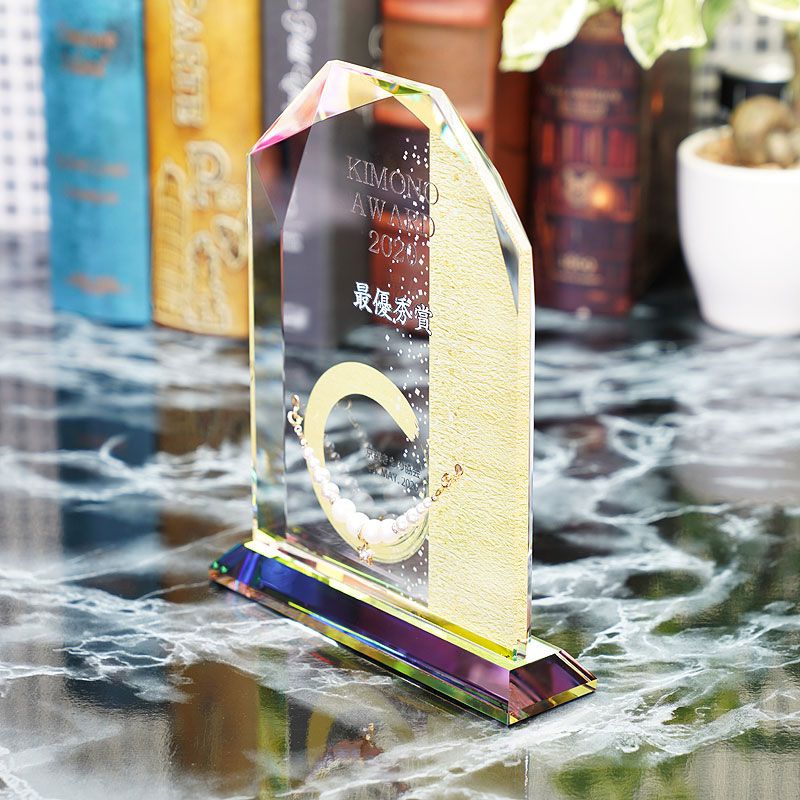 クリスタル製の盾をまとめたカテゴリ。各種記念品や表彰などの記念品向けにレーザー刻印やサンドブラスト加工に対応しています。