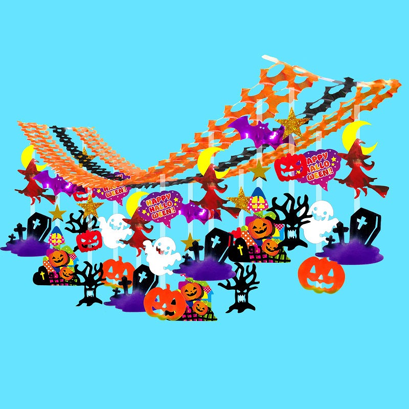 ハロウィン向けの店舗装飾品をまとめたカテゴリ。 吊りもの装飾品・タペストリー・エアディスプレイ・LED装飾・ウインドウステッカーなど多数ご用意。