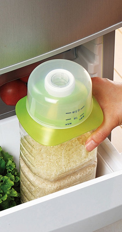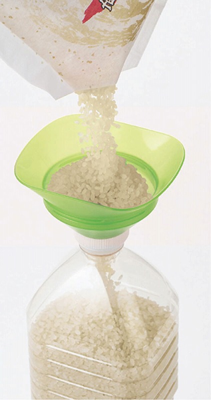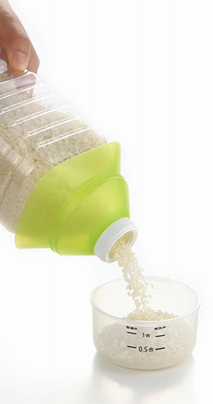 お米の計量・保存・移し替えがこれひとつ!ペットボトルを米びつとして使えます。移し替えに。計量に。冷蔵庫のドアポケットや野菜室にも入ります。