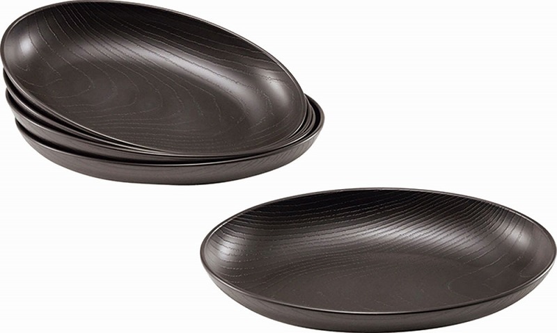 TW-03 木目オーバルプレート 五客 茶色