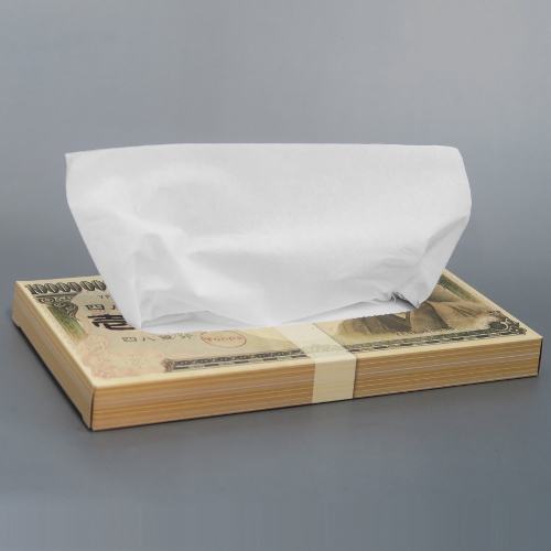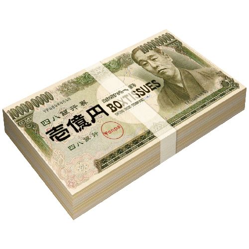壱億円モチーフの薄型ボックスティッシュです。インパクトのあるデザインはもらう人の心を楽しませてくれます。名刺の差し込みをすることができる箇所がありますので、販促品としておすすめです。