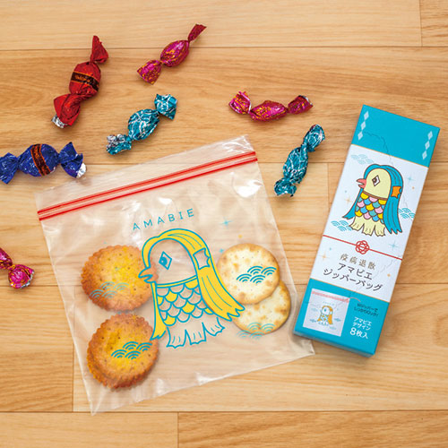 多用途アイテムの代表、ジッパーバッグもアマビエ柄に。健康を願う気持ちを伝えます