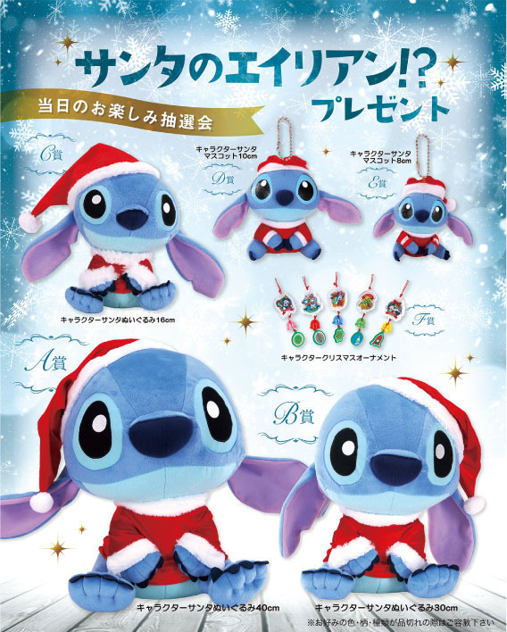 A賞 キャラクタークリスマス40cm・・・1本 B賞 キャラクタークリスマス30cm・・・2本 C賞 キャラクタークリスマス16cm・・・3本 D賞 キャラクタークリスマスマスコット10cm・・・4本 E賞 キャラクタークリスマスマスコット8cm・・・5本 F賞 キャラクタークリスマスオーナメント・・・35本 【付属品】 ■抽選用くじ(50人用50枚) ■抽選箱 1個 ■くじ明細書 1枚