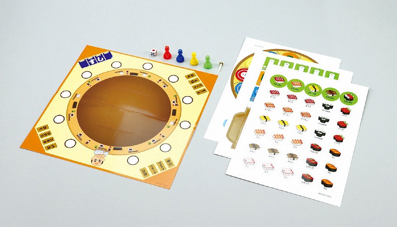 パーツ台紙×3、割りピン×1、サイコロ×1、コマ×4
