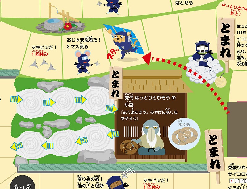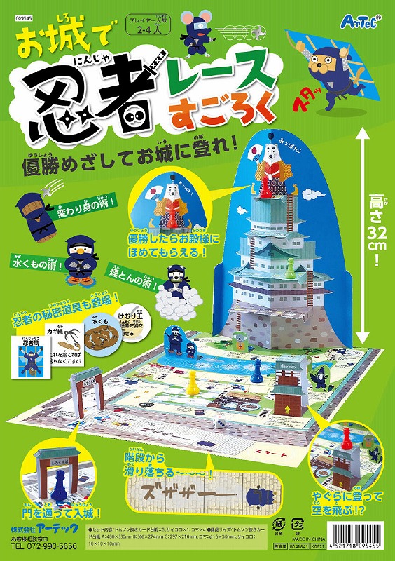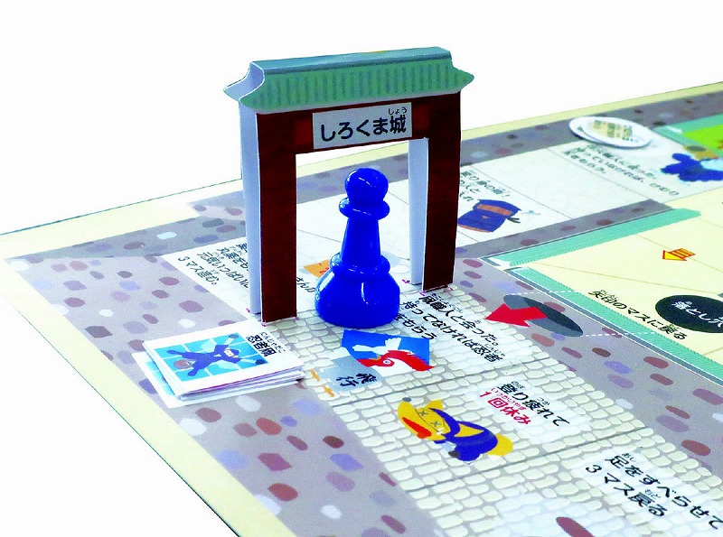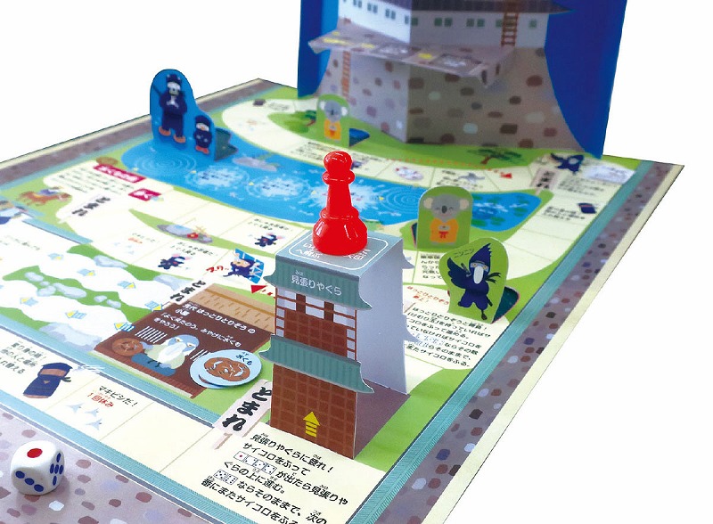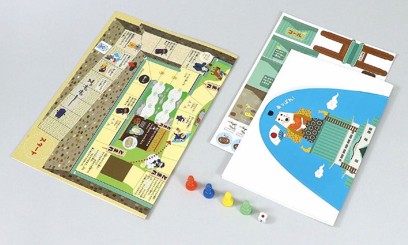 すごろくシート:330×480mm、型抜きカード台紙:210×297mm、コマ:φ16×30mm、サイコロ:10×10×10mm