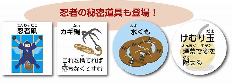 型抜きカード台紙×3、サイコロ×1、コマ×4