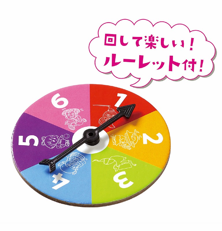すごろくシート:620×620mm、型抜きカード台紙:210×297mm、コマ:φ16×30mm、ルーレット:φ90×5mm
