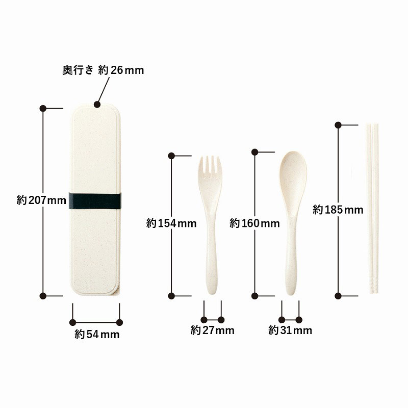 ケース:約W54×H26×D207(mm) スプーン:組み立て時約W31×H160(mm) スプーン:約W27×H154(mm) 箸:約185(mm)