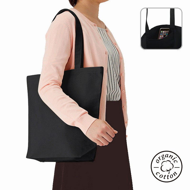 オーガニックコットンキャンバストート(M) 内ポケット ナイトブラック