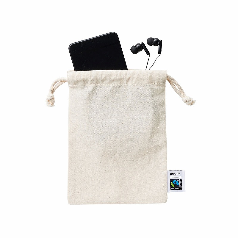 ”名入れ ロゴ入れ オリジナル” 『フェアトレードコットン巾着(S) ナチュラル』