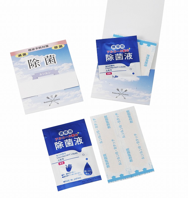 除菌液パウチ:50×80mm 絆創膏:19×72mm