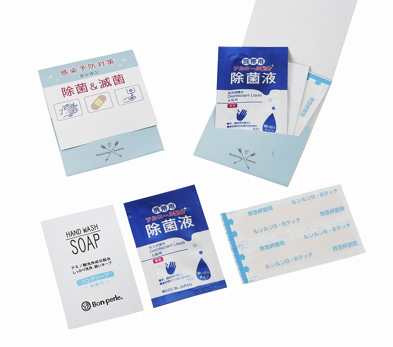 除菌液パウチ:50×80mm ハンドソープパウチ:50×80mm 絆創膏:19×72mm