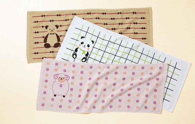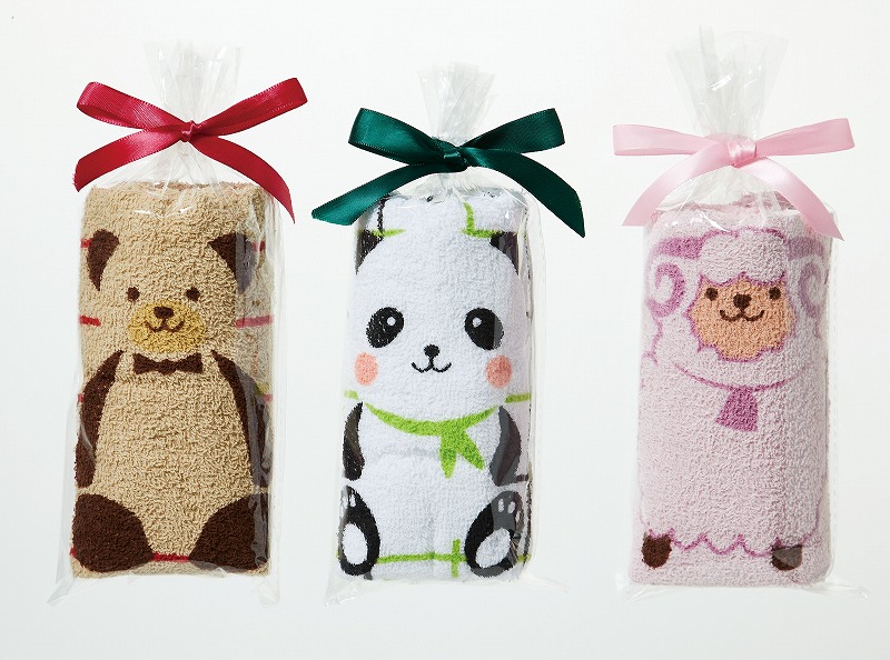 ほんわかアニマルのプリントがかわいいフェイスタオルを素敵にリボンでラッピング!