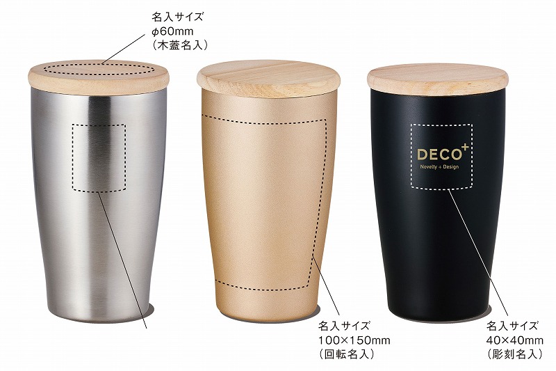 ”ロゴ、名入れ・ノベルティ、物販に!” 『ウッドキャップ・ステンレスタンブラー(マットブラック)』