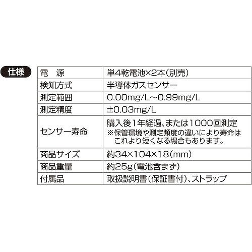 *電源: 単 4 乾電池×2 本 *検知方式: 半導体ガスセンサー