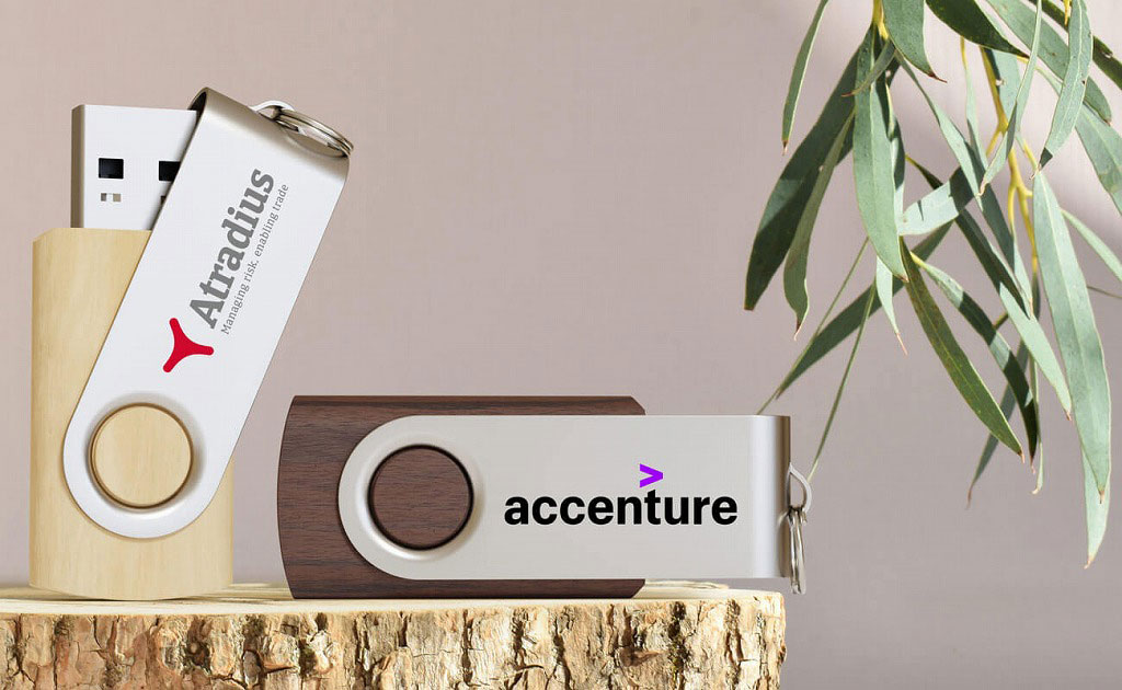 『ツイスター・ウッド』USBフラッシュドライブは、人気の定番モデル『ツイスター』のデザインに、木製シェルの自然な魅力を取り入れた美しいモデルで、色調にはダークとライトの2種類をご用意しました。360°回転式のメタル・カバーには、ご希望のロゴ等をスクリーン印刷、またはレーザー彫刻によって名入れをしてお届けしします。また、オプションの「個別レーザー彫刻」のご利用頂く場合は、個人名やシリアル・ナンバーのような個々に異なる情報を、USBメモリの一つ一つに刻印することも可能です。この個別の刻印は、ロゴやスローガン等の印刷と共にご依頼頂くことのできるサービスです。また、この木製のUSBメモリでは、USB-Cコネクタを装備する 『ツイスターGOウッド』 というモデルご用意しました。