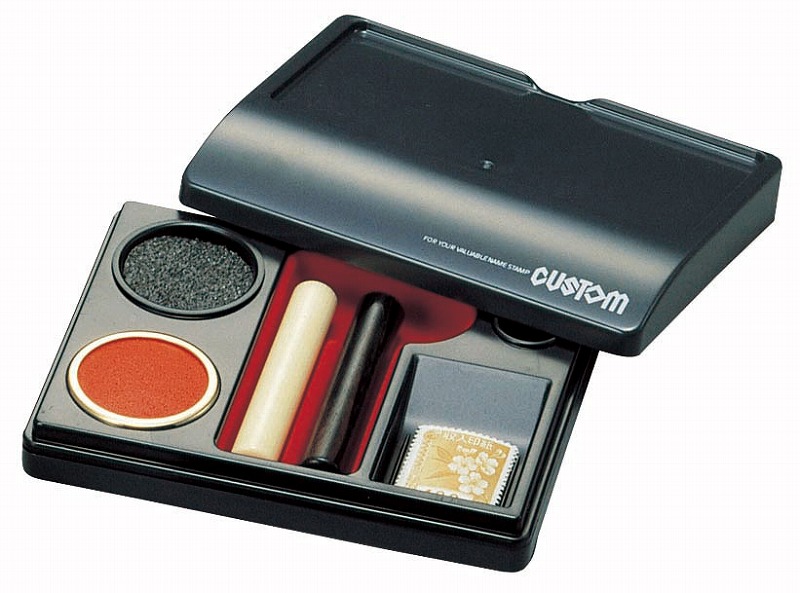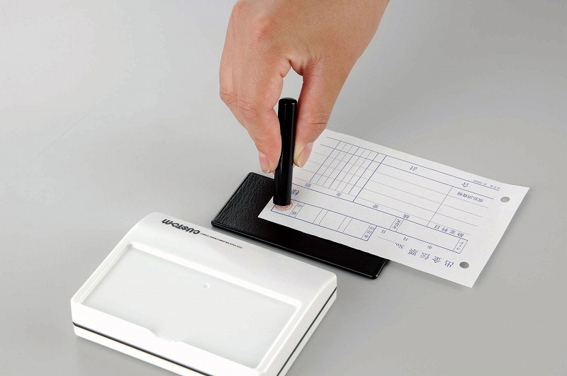 本体・フタ・パーツ:PS樹脂、捺印マット:レザー、朱肉キャップ:真鍮