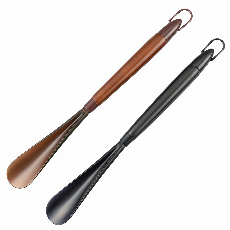 靴ベラ:MBS樹脂、キャップ:ABS樹脂、柄:ブナ材、U管:ナイロン、止ネジ:鉄