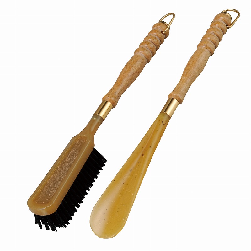洋服ブラシ、33×33×280mm(69.5g)、くつべら、42×20×300mm(47.1g)、フック、69×26×83mm(15.5g)