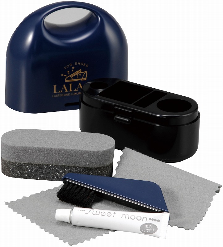 〈本体(上・下)・持ち手・ブラシ本体〉:PS樹脂、〈ブラシ〉:ブタ毛、〈クロス布〉:ウール20%・レーヨン80%〈スポンジ〉:ポリエステル樹脂、〈スポンジケース〉:PS樹脂