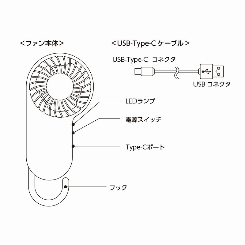 取説付(紙箱面)、Type-Cケーブル付属(1000mm)、バッテリー容量500mAh