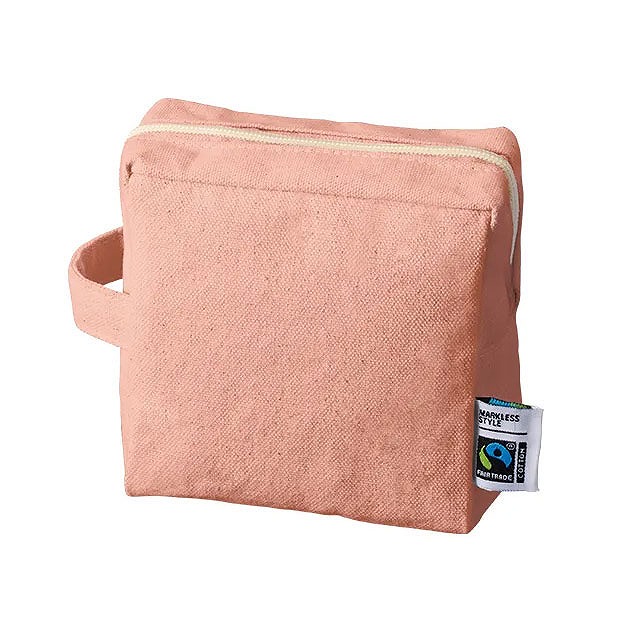 フェアトレードコットンキャンバスファスナーポーチ(S) スモークピンク