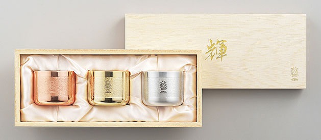 表面には水滴がつき、より一層涼やかさを演出してくれます。金仕上げは耐食性に優れ金属臭がしない金メッキを内外面に、銀仕上げは殺菌効果・耐食性に優れた銀メッキを内外面に、純銅タンブラーは内面にイオン効果のある錫メッキを、それぞれが輝きを放ち、特別な時間をより一層引き立たせます。持ち手には手触りの良い質感をまとった槌目模様。伝統の技術を集約し、デザイン性・機能性を兼ね備えた高品質のぐい呑みセット。こちらの商品は、Made in TSUBAME認定商品です。