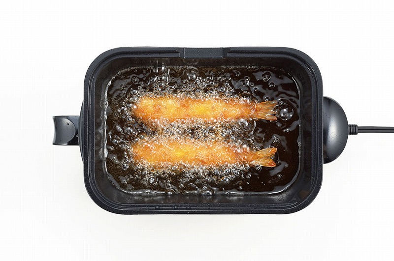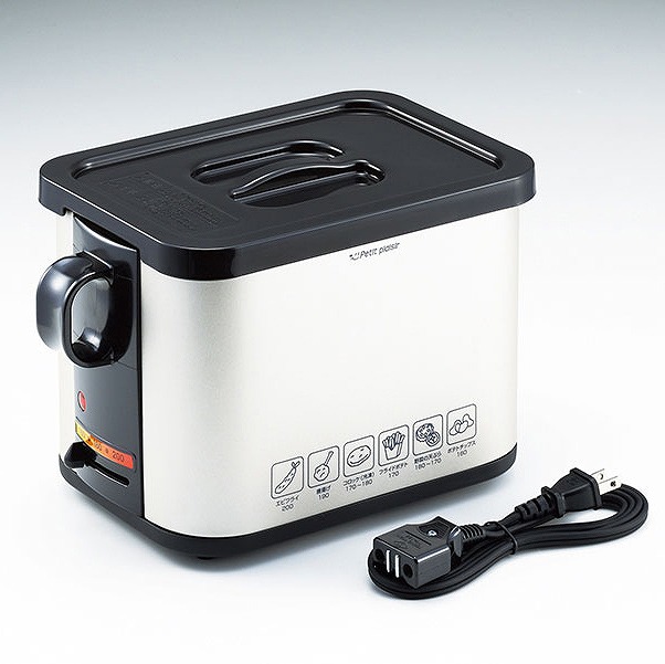 鍋:アルミダイキャスト(フッ素樹脂加工)黒、蓋:ポリプロピレン、本体枠:鉄(アクリル塗装)、ハンドル:フェノール樹脂、マグネット式コード長さ:1.5m、100V/980W