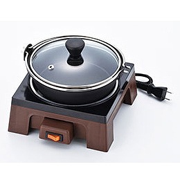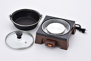 鍋:アルミ板(内面:フッ素樹脂塗装・外面:シリコン塗装)、樹脂部(本体):ポリプロピレン、上枠:フェノール樹脂、コードの長さ:1.4m、AC100V/450W