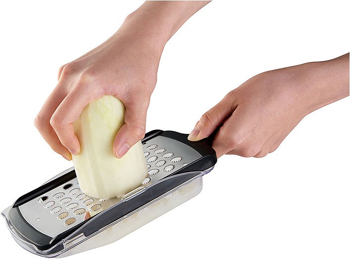 本体:ポリプロピレン、刃:ステンレス鋼、容器:AS樹脂、すべり止め:ゴム