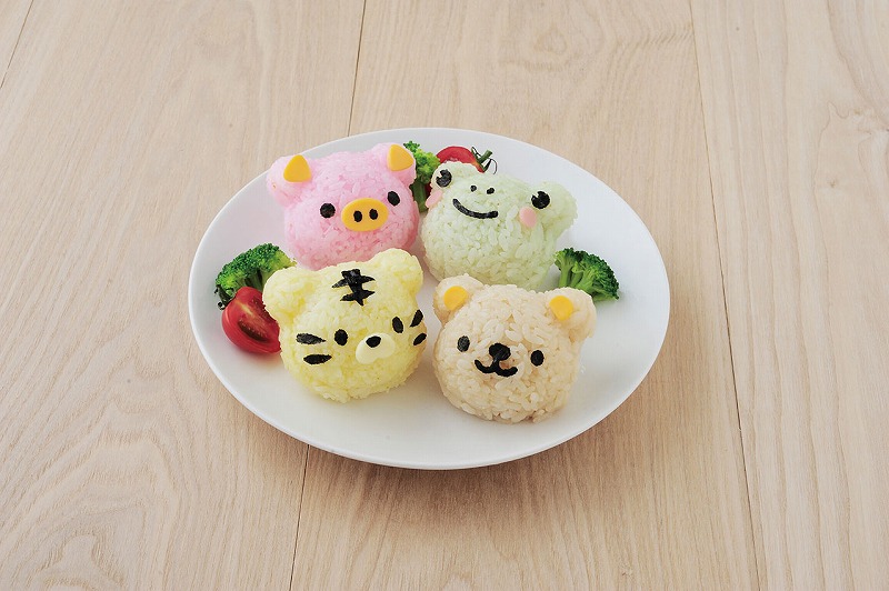 おにぎり型:ポリプロピレン(120℃)、カッター(4種共通):ABS樹脂(80℃)、カッターマット:シリコーンゴム(180℃) ※( )内の温度は耐熱温度です。