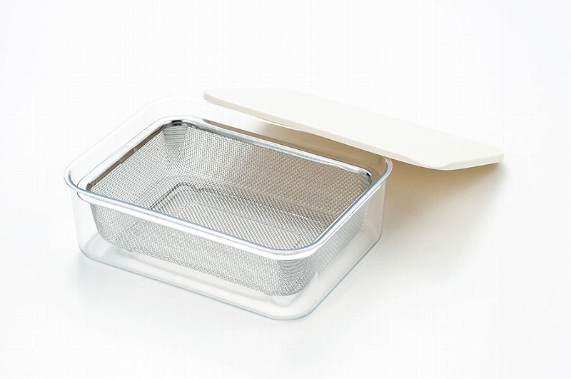 本体:TPX樹脂、フタ:ポリプロピレン、ザル:18-8ステンレス