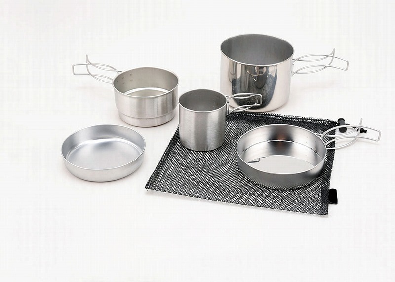 フライパン:18-0ステンレス、カップ・クッカー・マグカップ:18-8ステンレス、収納袋:ナイロン樹脂
