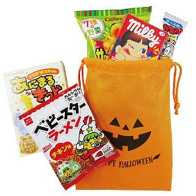 ハロウィンの巾着にお菓子を詰めてそのまま持ち帰られます