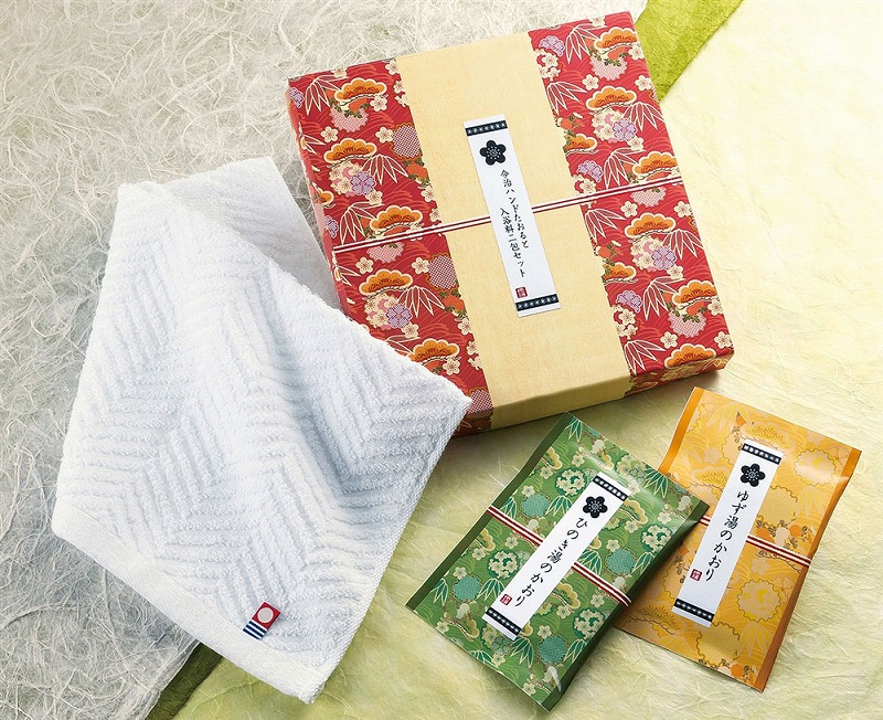 日本最大規模のタオル産地としてその名を馳せ、 豊かな自然と良質な水に恵まれた今治産のハンドタオルと、和の香り(ひのき・ゆず)の湯のセットです。日本の香りを楽しみながらゆっくりと寛ぎのお時間を。