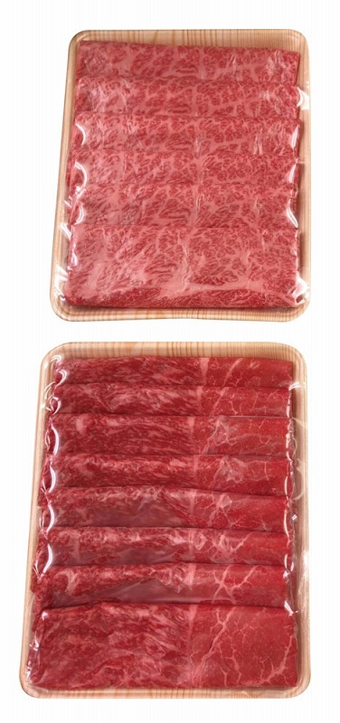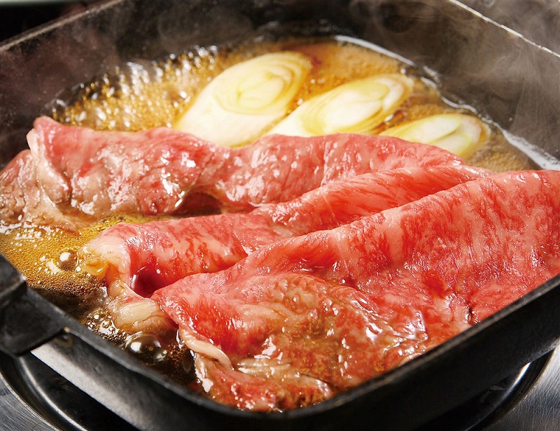東京食肉市場の仲卸でもある銀座吉澤が厳選した黒毛和牛の雌牛。雌牛ならではのふわっとなめらかで柔らかい霜降り肉と、肉本来の旨味を味わえる赤身肉(ウデ・モモ)をセットにしました。老舗醤油メーカー・正田醤油と協同開発した特製割り下がより一層その旨味を引き立てます。