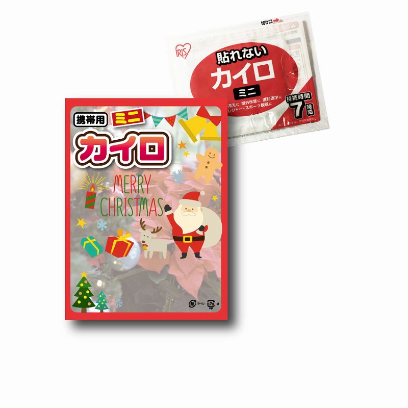 クリスマスパッケージ入りの使い捨てカイロミニサイズです。安心のアイリス製(日本製)。