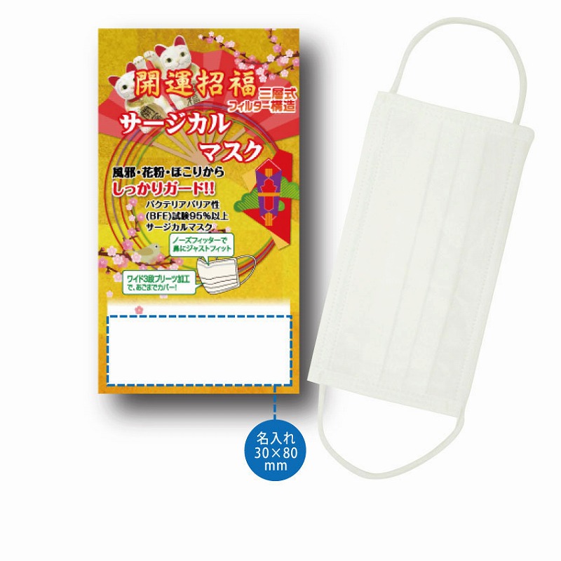 ”販促品 ノベルティ グッズ” 『開運招福サージカルマスク1枚入』