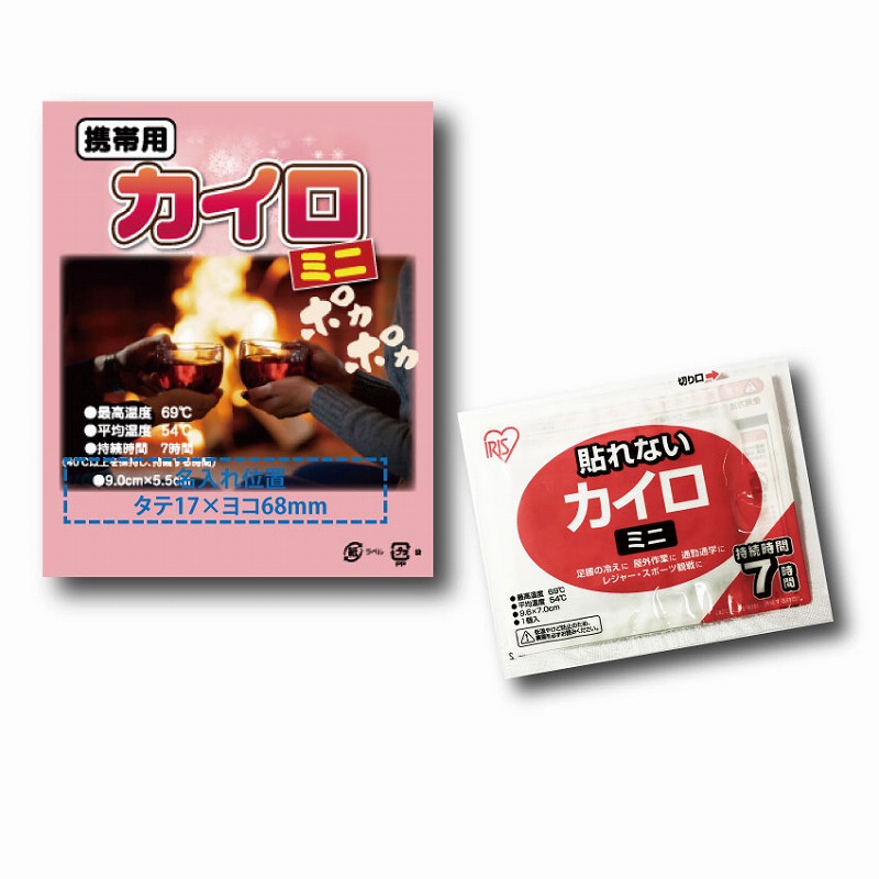 台紙付のPP袋入りの使い捨てカイロミニサイズです。安心のアイリス製(日本製)。