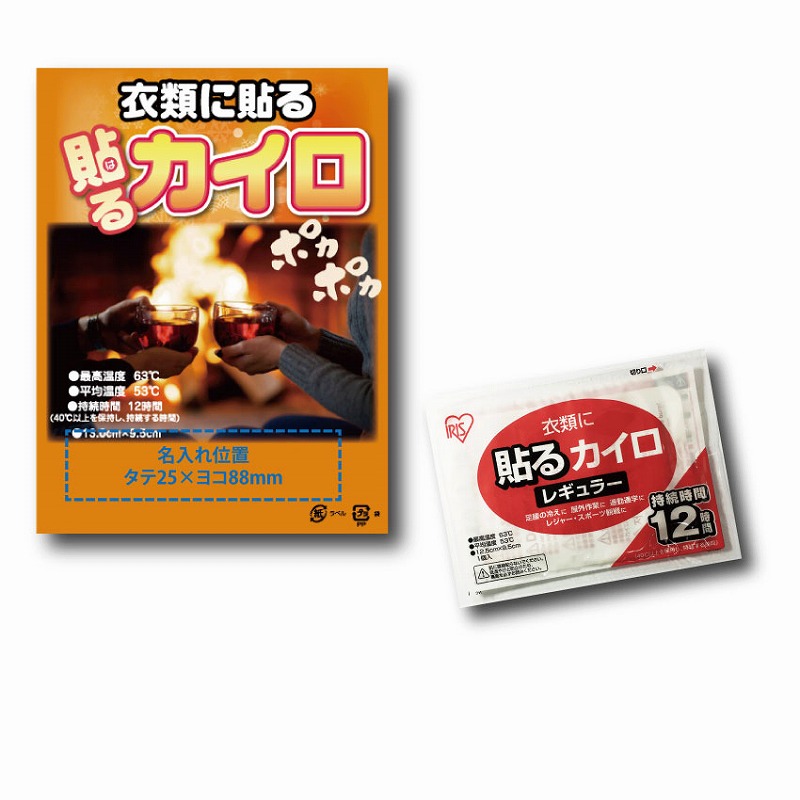 台紙付のPP袋入りの使い捨て貼るカイロレギュラーサイズです。安心のアイリス製(日本製)。