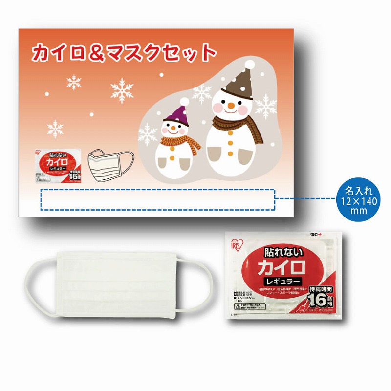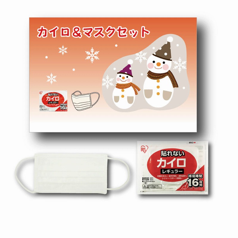 不織布サージカルマスクと、使い捨てカイロレギュラーサイズをセットにしました。カイロは安心のアイリス製(日本製)。