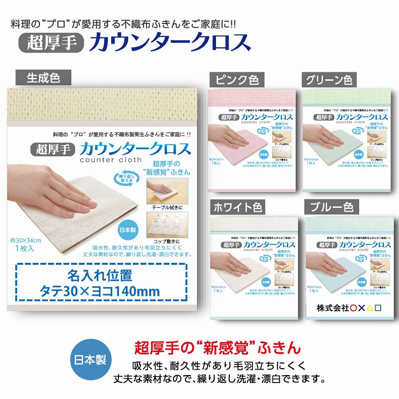 ”低価格 安いノベルティ 粗品” 『超厚手カウンタークロス1枚入(4色アソート)』