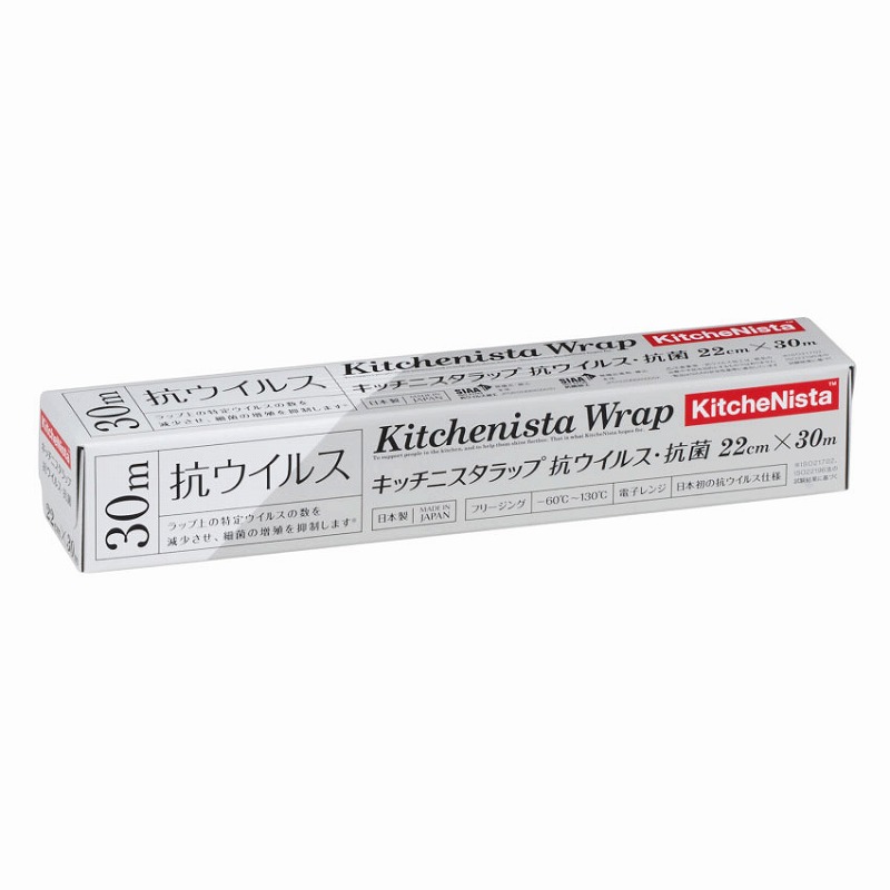 ラップ上の特定のウイルスを減少させ、細菌の増殖を制御でき、ラップを衛生的に保つことのできるキッチンラップです。