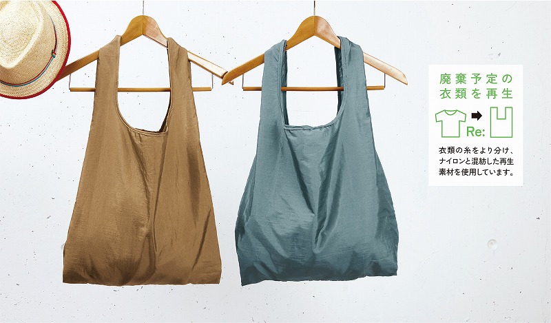 廃棄予定の衣類を再利用した、上質な風合いのエコバッグ。