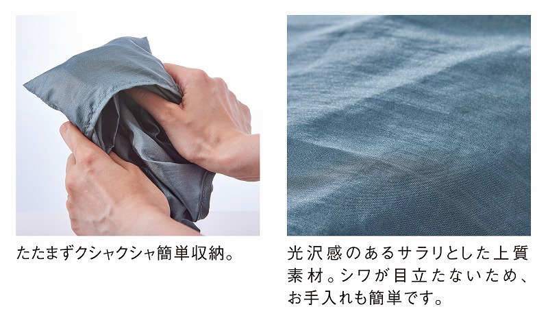 2.シワになりづらい上質素材を使用。たたまずクシャクシャと簡単収納できます。